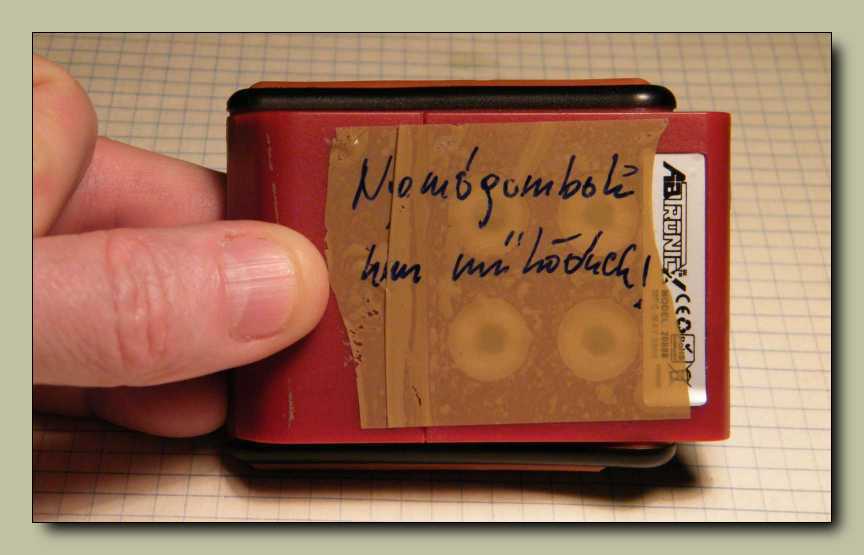 A felirat érdekessége, hogy ez nem magára a készülékre van ráírva, hanem a